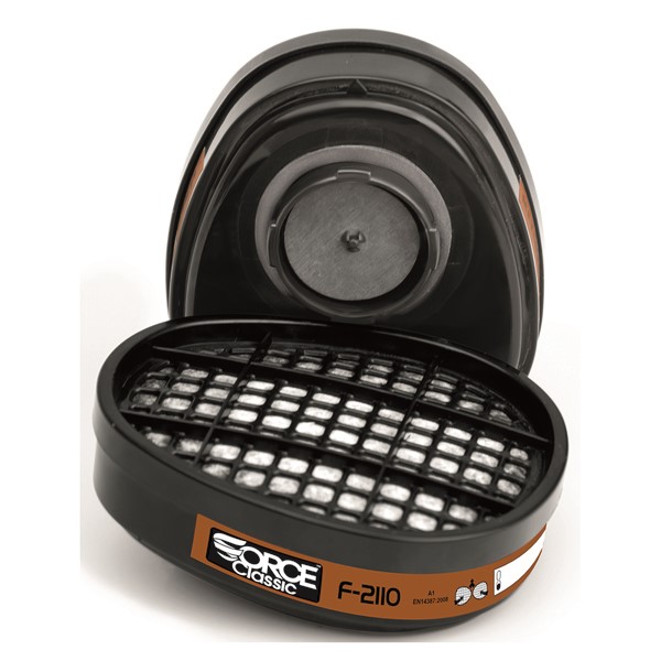 JSP Force 8 F-2110 A1 Organic Vapour Cartridge (pair) for the Force 8 Half mask body. provides protection against particulates with low profile angle for minimum visual impairment. Cartridges have an integral maintenance free disposable inhalation valve. Easy to attach to the respirator with a secure fit when applied.