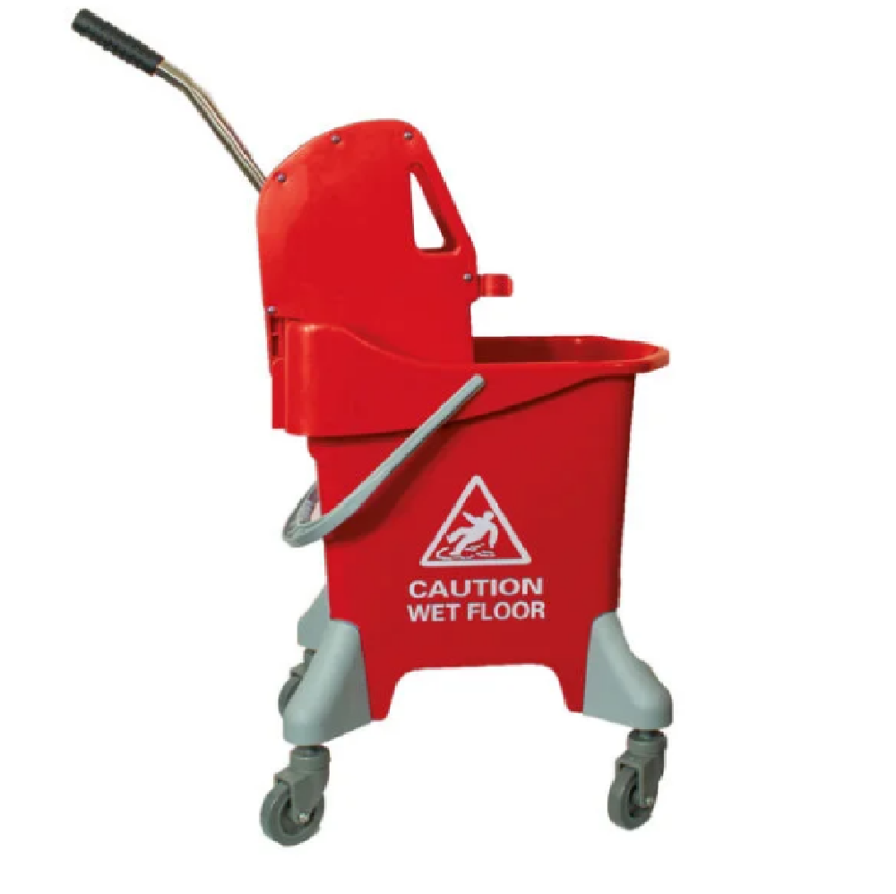 A competitively priced colour coded mopping system complete with gear press wringer which is ideal for use when mopping small to medium size areas. Easy to manoeuvre in addition to featuring a large carrying handle. ‘Caution wet floor’ is printed on both sides of the bucket.