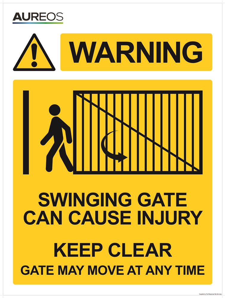 Warning - Swinging gate, keep clear 900mm x 1200mm